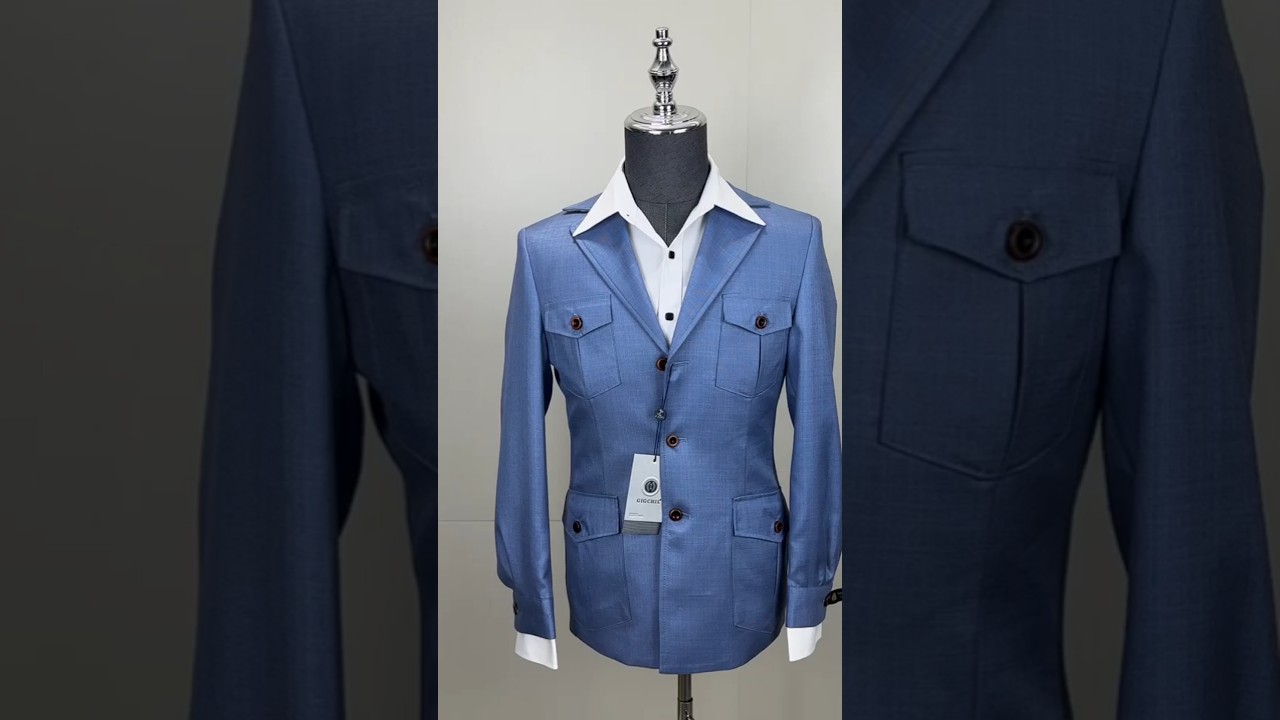 بدلة رسمية رجالية كاملة مكونة من ثلاثة قطع، طوق مسنن،فتحة تهوية جانبية، مزدوج الصدر، رقبة دائرية،